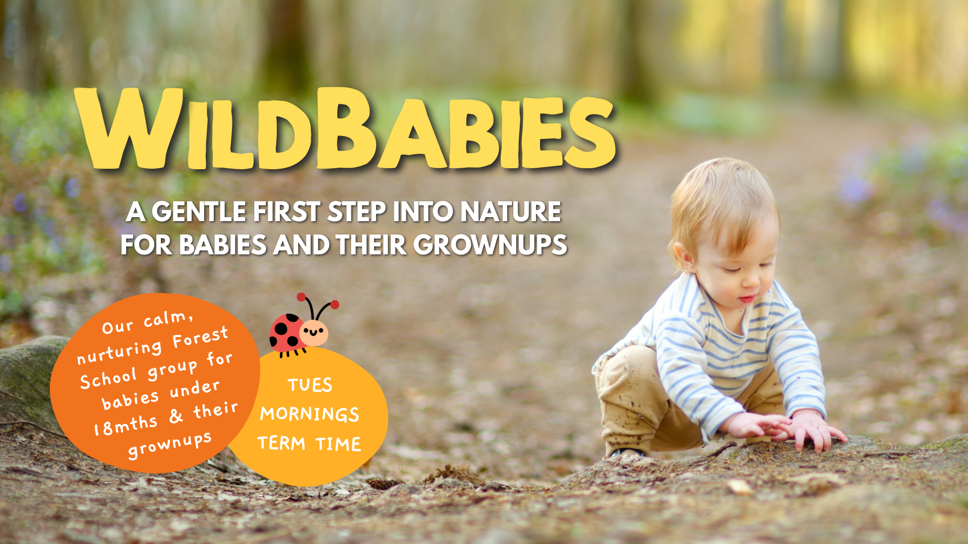 This block of WildBabies sessions arrives as the woodland reaches its warmest and most alive. Everything is flowering, buzzing and moving, and there is no better time to be low to the ground with a baby, noticing what's happening at their level. Sessions slow down to look closely at the small world: the insects, the flowers, the creatures going about their work.