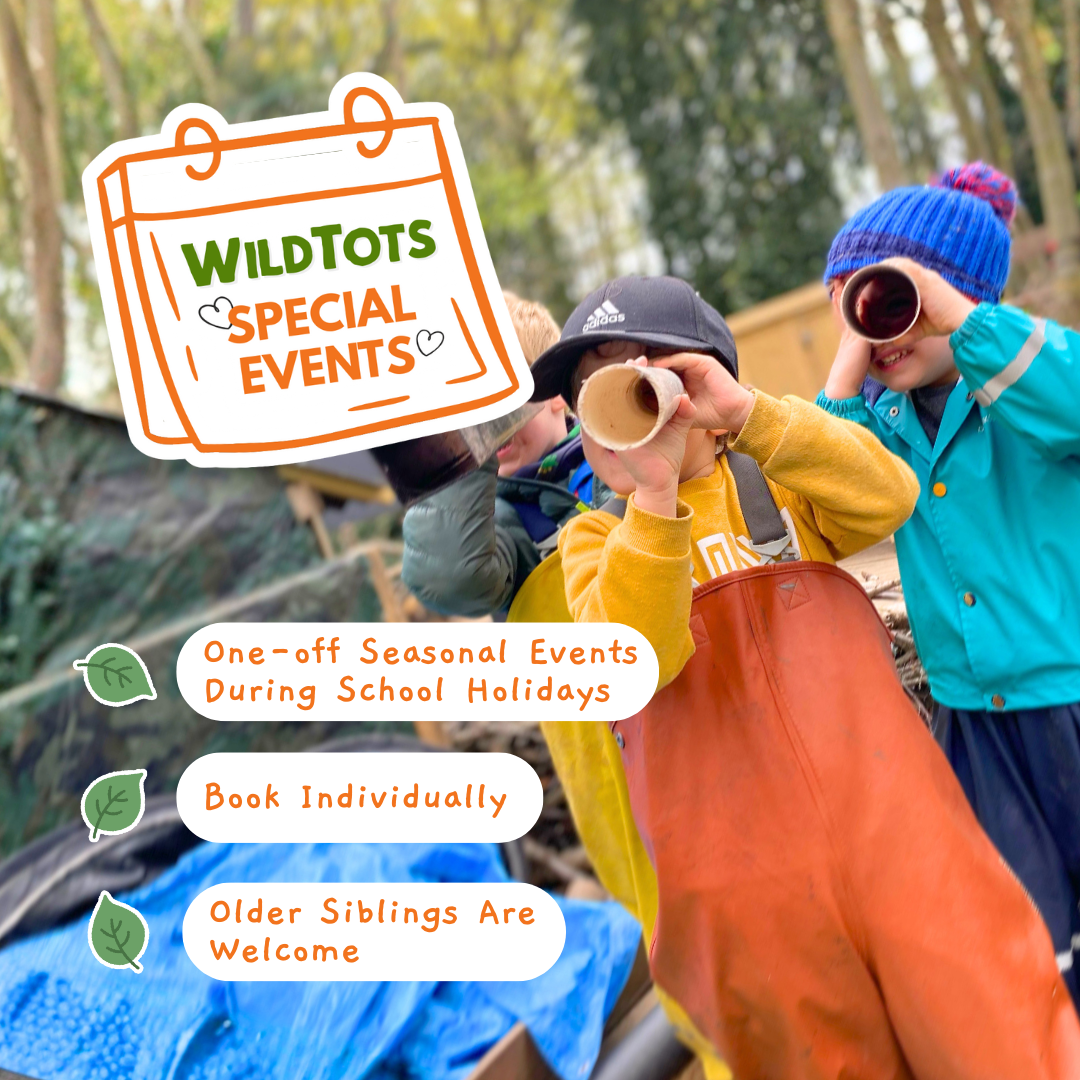 WildTots Seasonal Specials are one-off Forest School sessions held during school holidays/weekends. Each session is themed around the time of year, such as Easter, the Summer Solstice, Halloween, the Winter Solstice or Christmas, and is designed to feel a little different from our regular weekly sessions.
